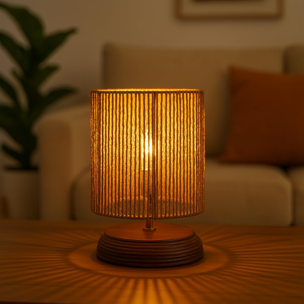 ExclusiveLane 'Geometry' Mango Wooden Table Lamp for Bedroom (13.1 Inch, Without Bulb, Pack of 1) | CFL/LED Table Lamp for Living Room Decoration Bedside Lamp Bedside Lamps for Bedroom Bed Side Lamp