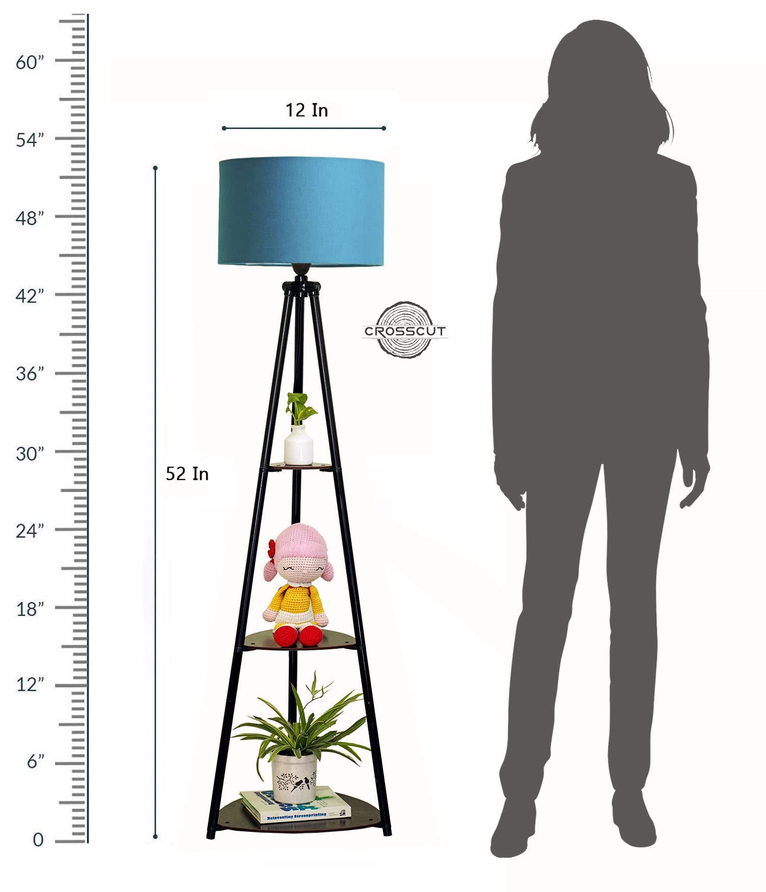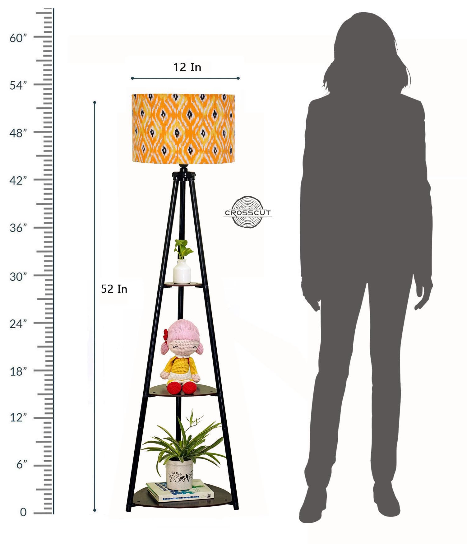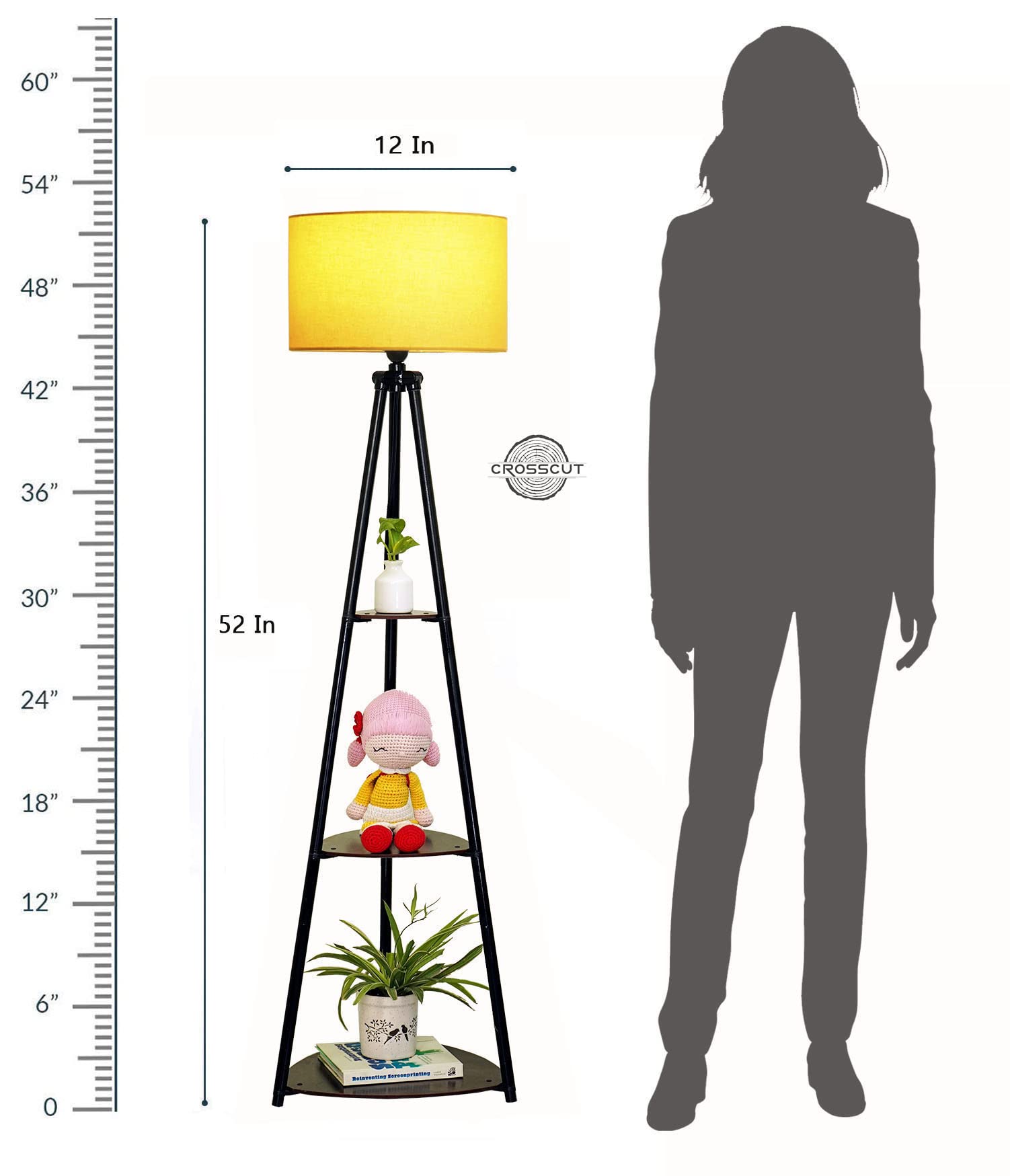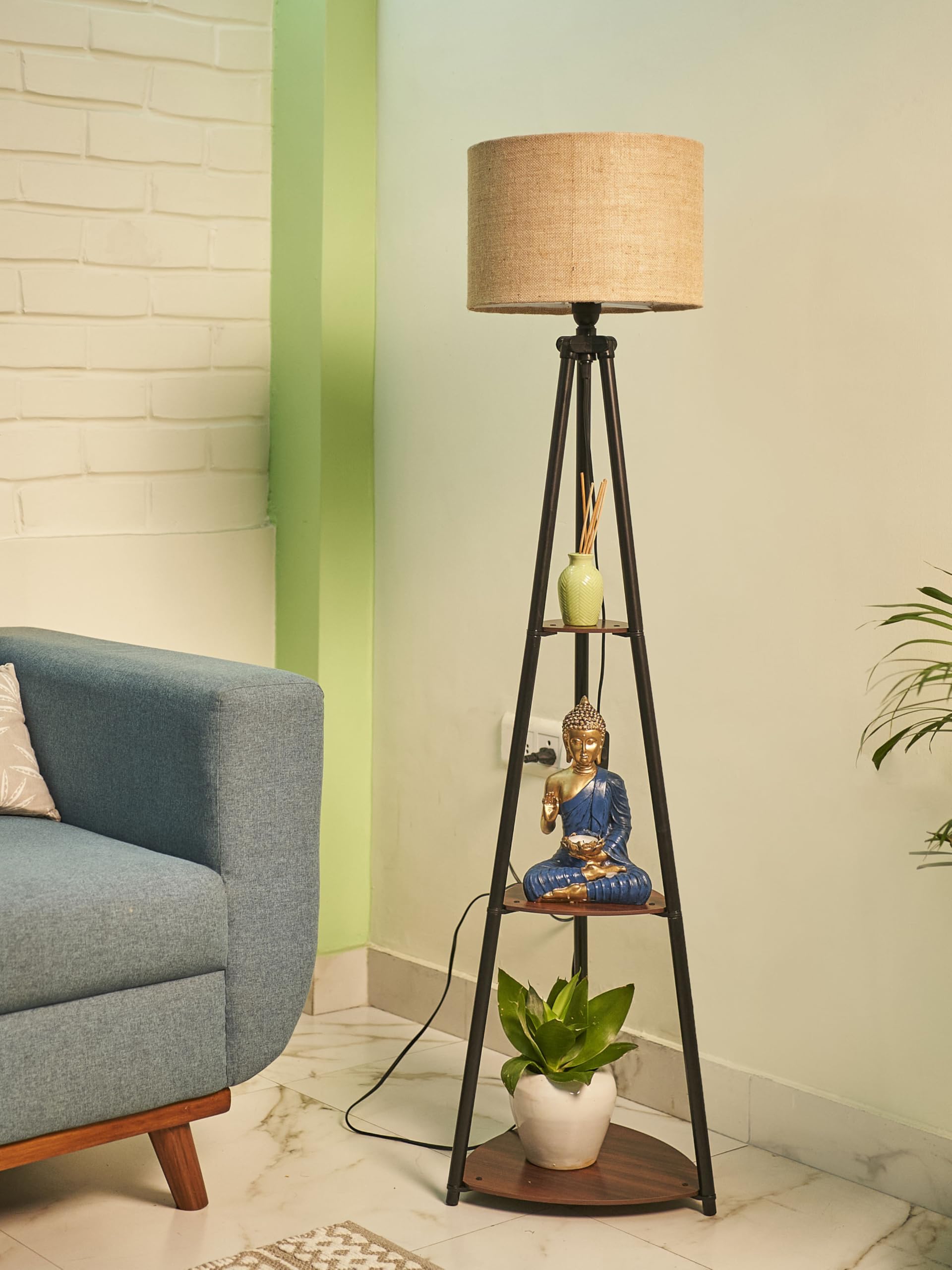 Crosscut Furniture LED Tripod Floor Lamp with 3 Shelves, Brown Jute, Metal Corner Floor Lamp, for Decoration and Gifting