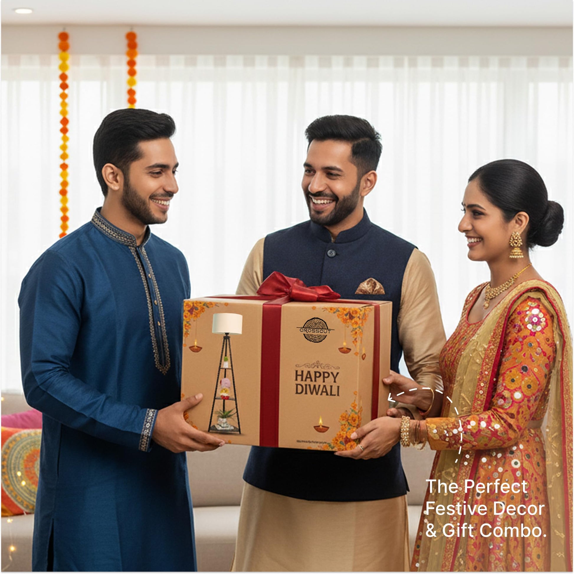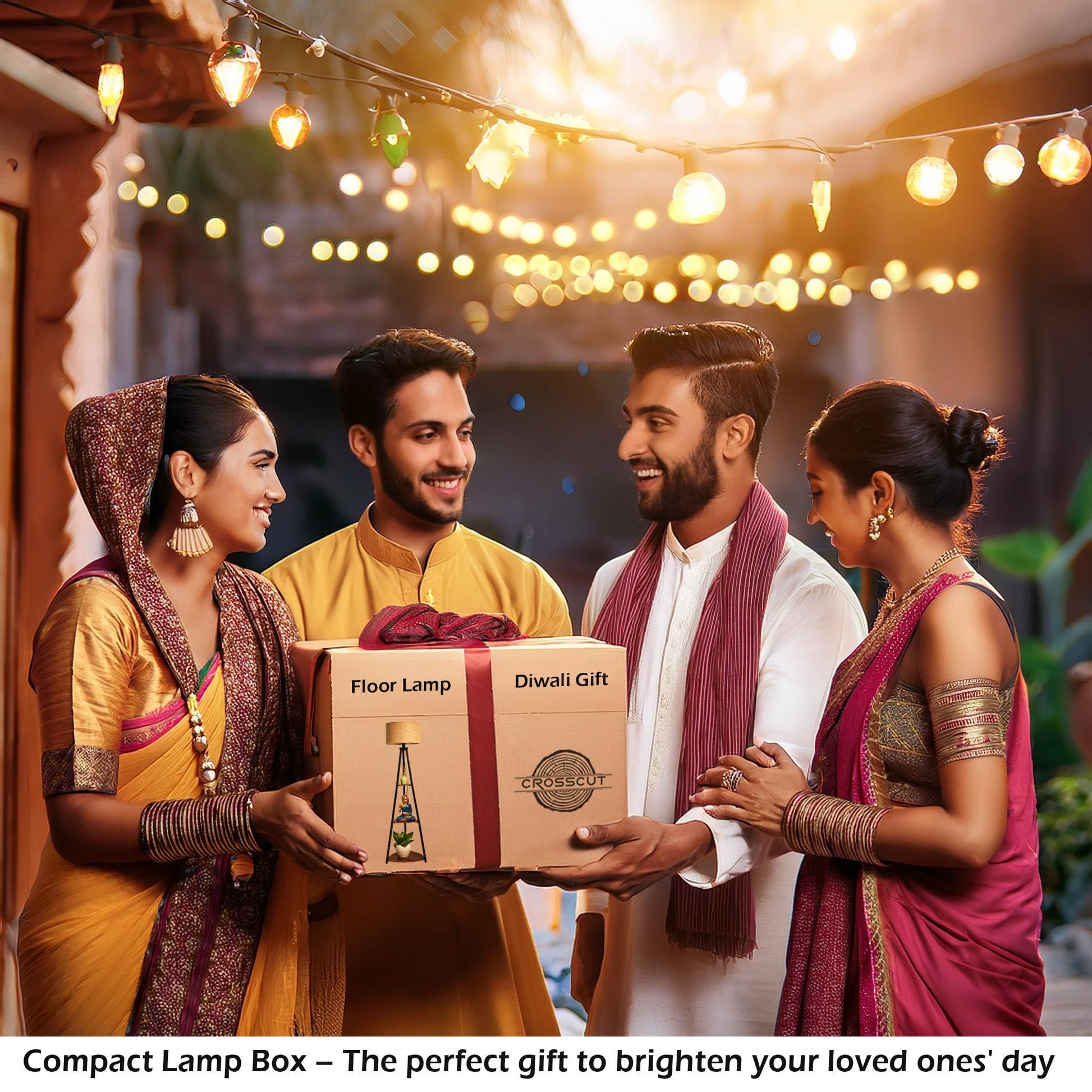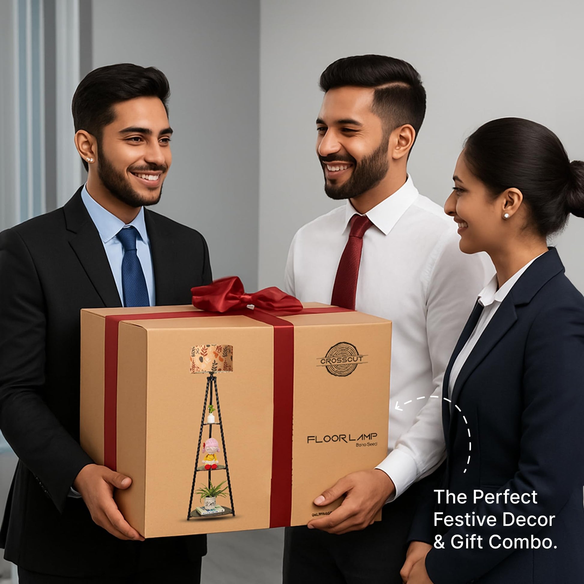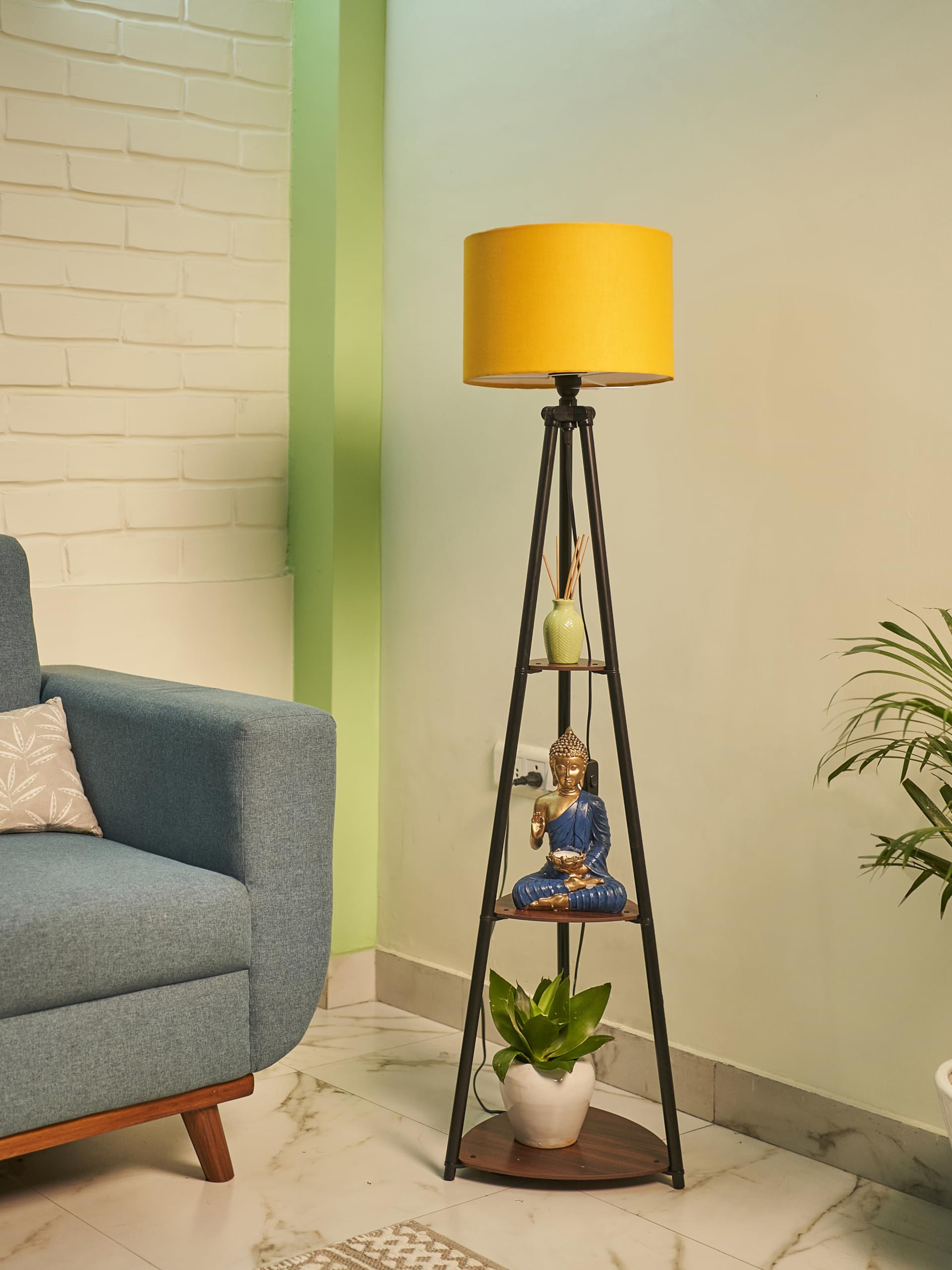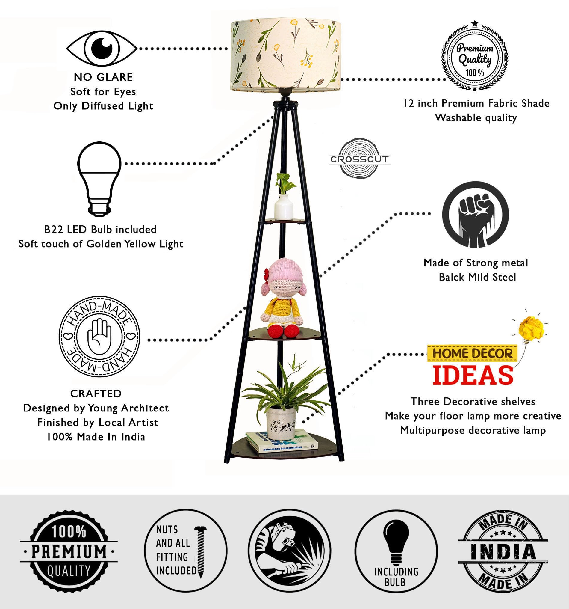 Crosscut Furniture LED Tripod Floor Lamp with 3 Shelves, Brown Jute, Metal Corner Floor Lamp, for Decoration and Gifting